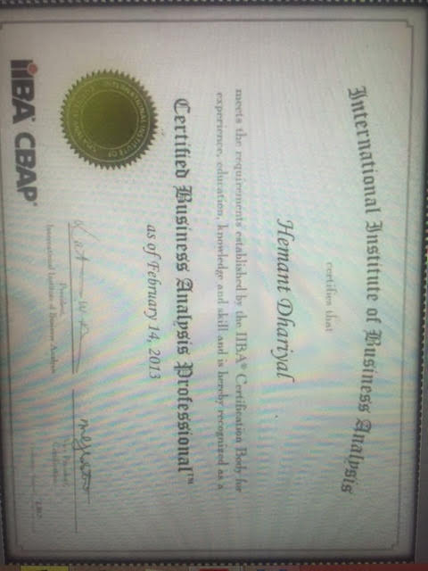 Winning in Business Analysis market has never been this easy!! Remember our first meeting, I consistently delivered the same message to you all “Get the CBAP designation and you will get ‘Hired'”. Although I was teaching business Analysis for almost a decade, I never decided to write the exam thinking (justifying) “I did not need it”, it was not for me etc. And life went on. I kept teaching and most of the folks who wrote the exam got certified and sadly 3 students failed the exam. Late January 2013, while teaching, my conscience challenged me to “Teach (steering away from the word lead) by example”. It was at this time I decided to write the CBAP Certification. The only item in scope for me was a “Pass”. Failing has never been an option, more so especially now, when you all look up to me, how could I fail you? And you all became my motivation to prepare and ultimately attain the certification. My success is incomplete without your contribution. Thank you for your best wishes and encouragement.